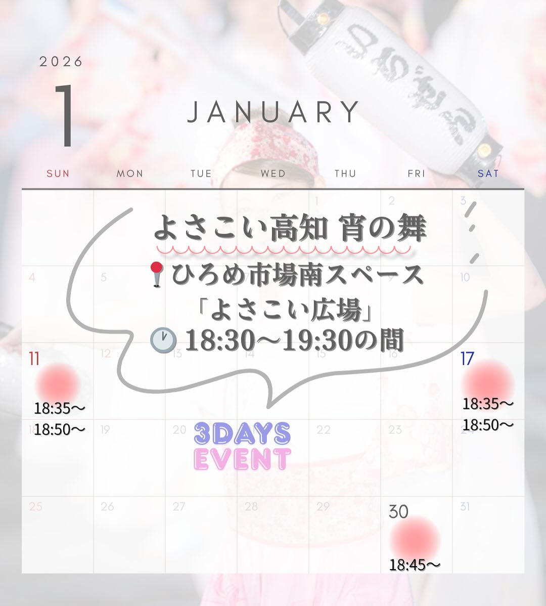 🗓️ 1月11日(日)、17日(土)、30日(金)